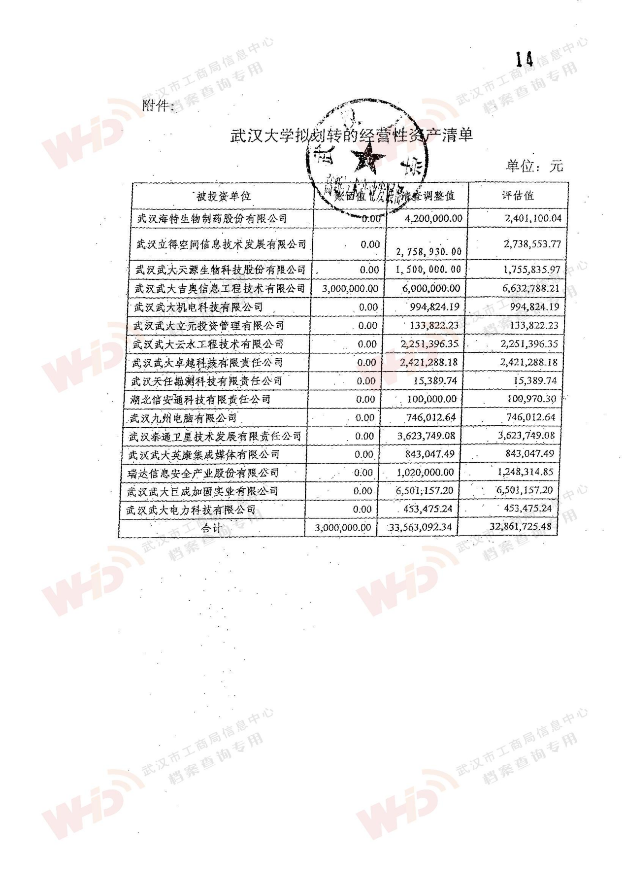 - 2007年7月30號武漢大學發文:關于劃轉經營性資產到武漢大學資產經營投資管理有限責任公司的通知