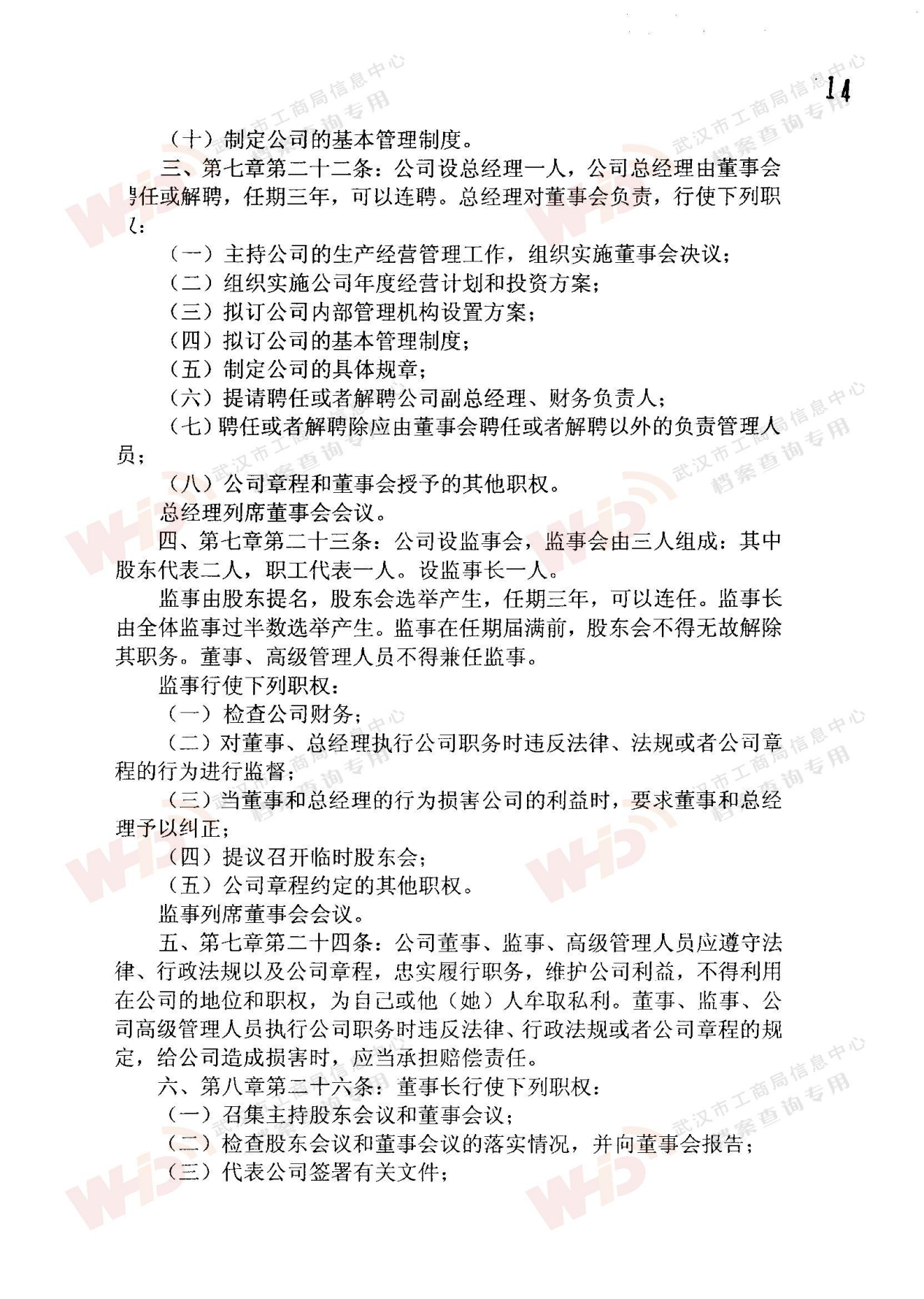 - 2009年11月15日武漢武大云水工程技術有限公司三屆一次董事會決議: 一、決定聘請談廣鳴為公司名譽董事長。 二、決定選舉季玉明為公司董事長,公司法人代表。免去燕在華公司董事長職務。 三、經董事長季玉明提名,決定聘任羅金耀為公司總經理。 四、經公司總經理提名,決定聘任劉軍強為公司副總經理。 五、經公司總經理提名,決定聘任龔明新為公司財務總監,燕在華為市場總監,陳大雕為技術總監,董文楚為研究所所長。 經董事長提名,決定聘任萬玲為董事會秘書。