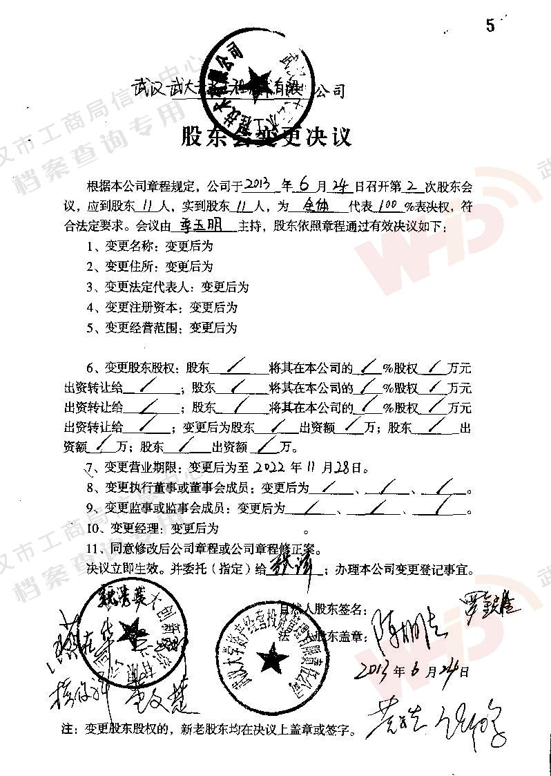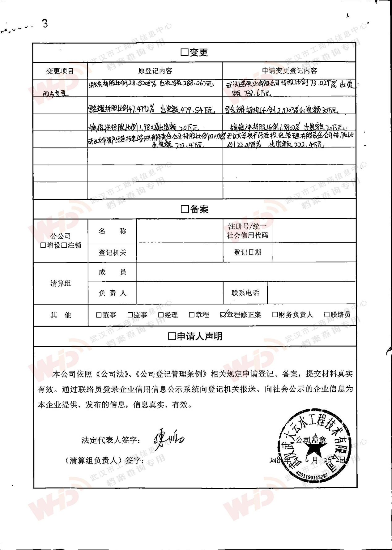 - 2018年5月15日武漢正譽實業集團有限公司入股武漢武大云水工程技術有限公司。