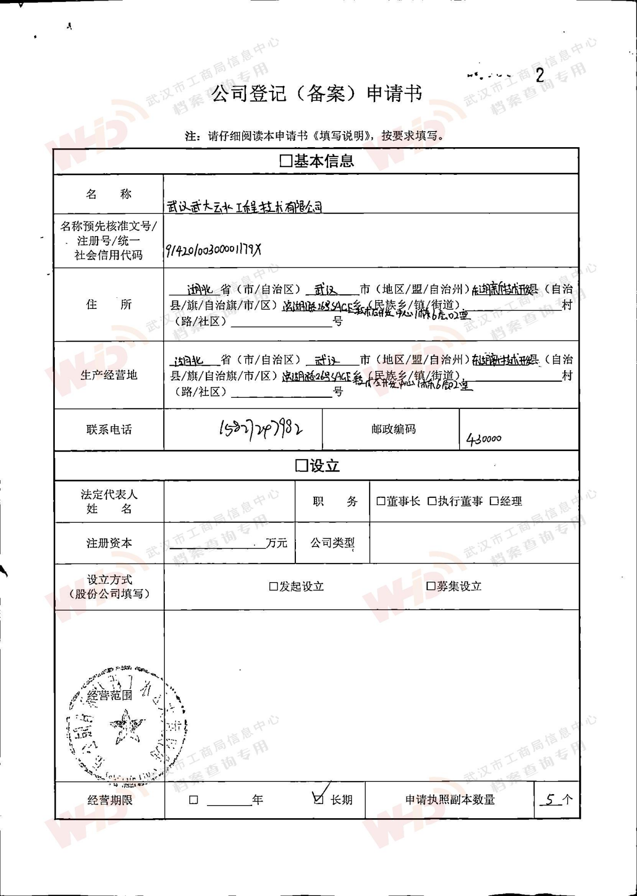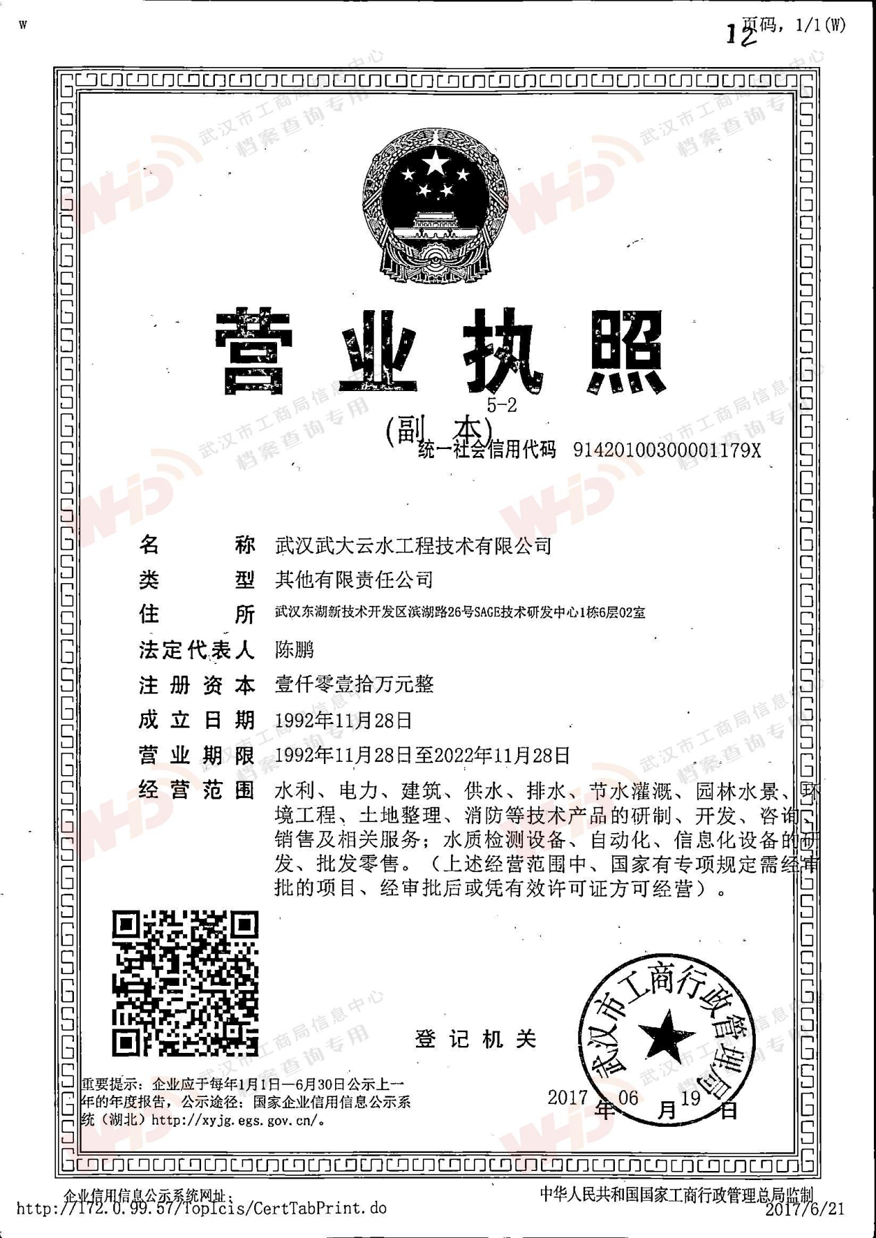 - 2003年7月25日公司名變更為武漢武大云水工程技術有限公司。武漢大學同意使用“武大”冠名。